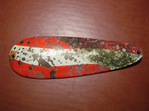 Kunagi jäi landi taha tamiilijupp kus taoline lant otsas.Punaste triipude asemel mustad.Siseküljel kiri 3/5 oz DARDEVLET DETROIT U.S.A. Tean et Haugihirm korjab plekke-ehk tunneb huvi?Ise pole teist vette kastnud sest kergemate landude usku.